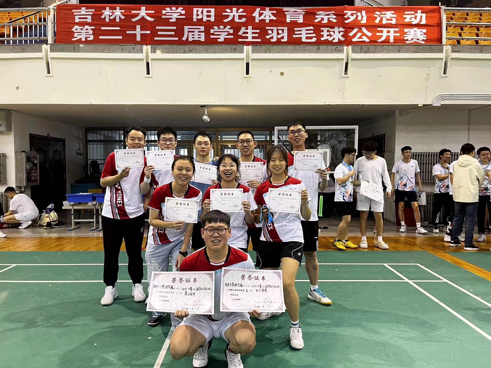 淘汰,虽败犹荣,仍然取得了第五的优异成绩。女团成员为了准备比赛也非常努力,队员们坚持在比赛前一个礼拜每天上午都来球馆训练来保持手感,相信她们未来会带着对羽毛球的热爱继续前行。
