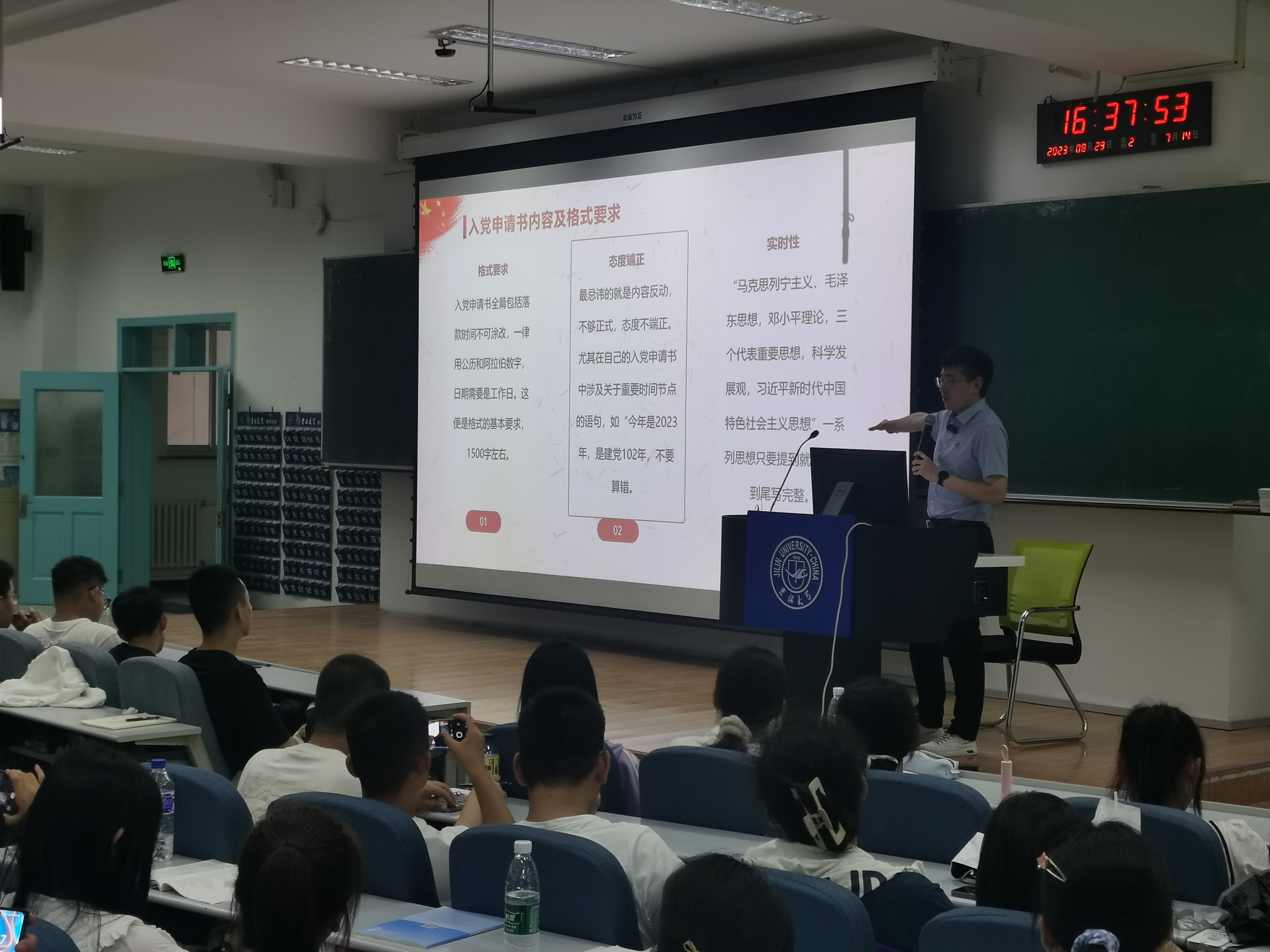新生入党启蒙教育会议在第三教学楼第一阶梯教室开展。本科生第八党支部书记禚传阳老师作为主讲人出席会议。成人抖音