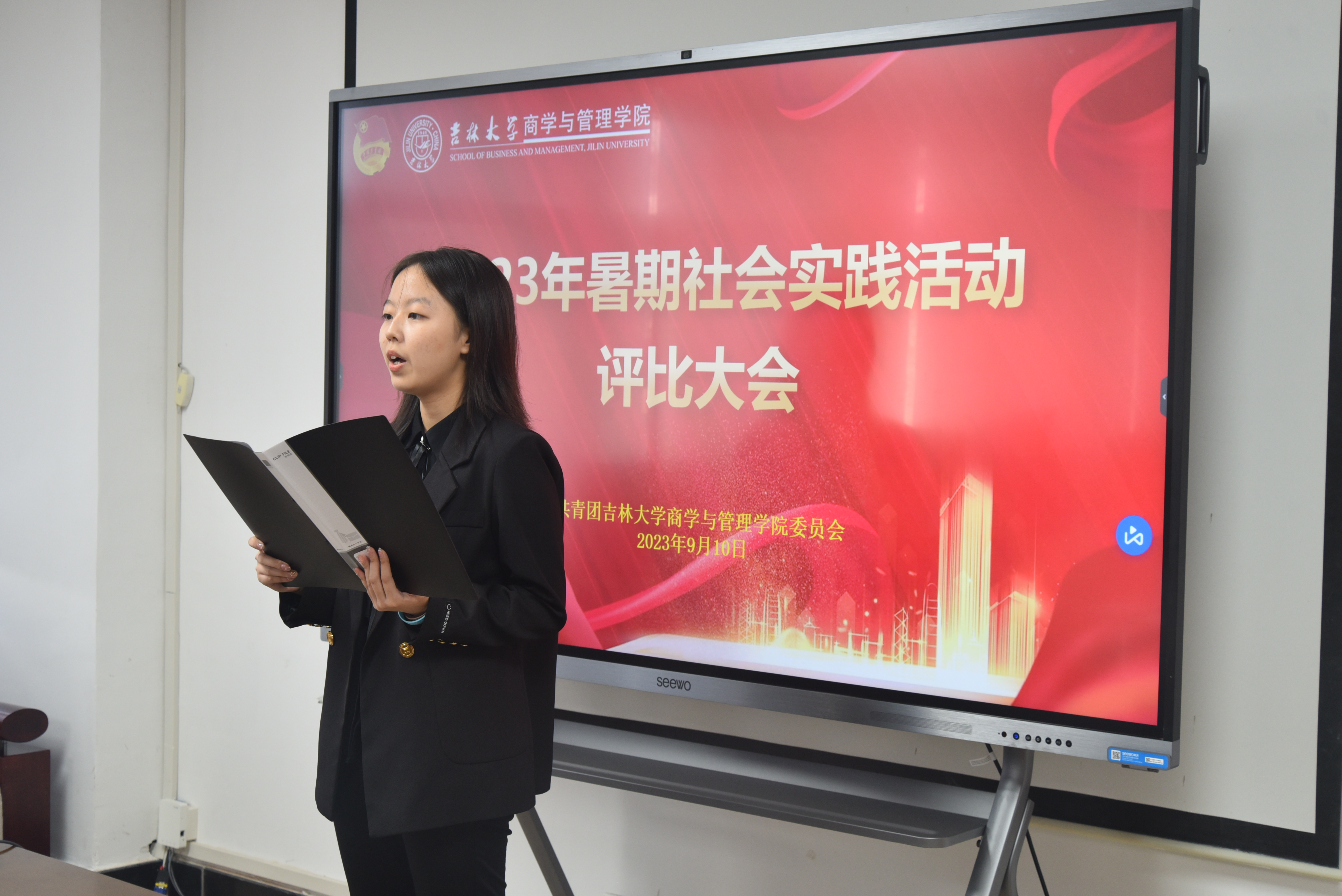 团委书记兼2020级本科生辅导员刘天目老师,团委副书记孙玖贺,学生会主席团成员柏申苏,公寓管理与学生服务委员会主任杨琳,团委社会实践部部长谭凯兮和胡新然作为此次大会的评委嘉宾出席。
