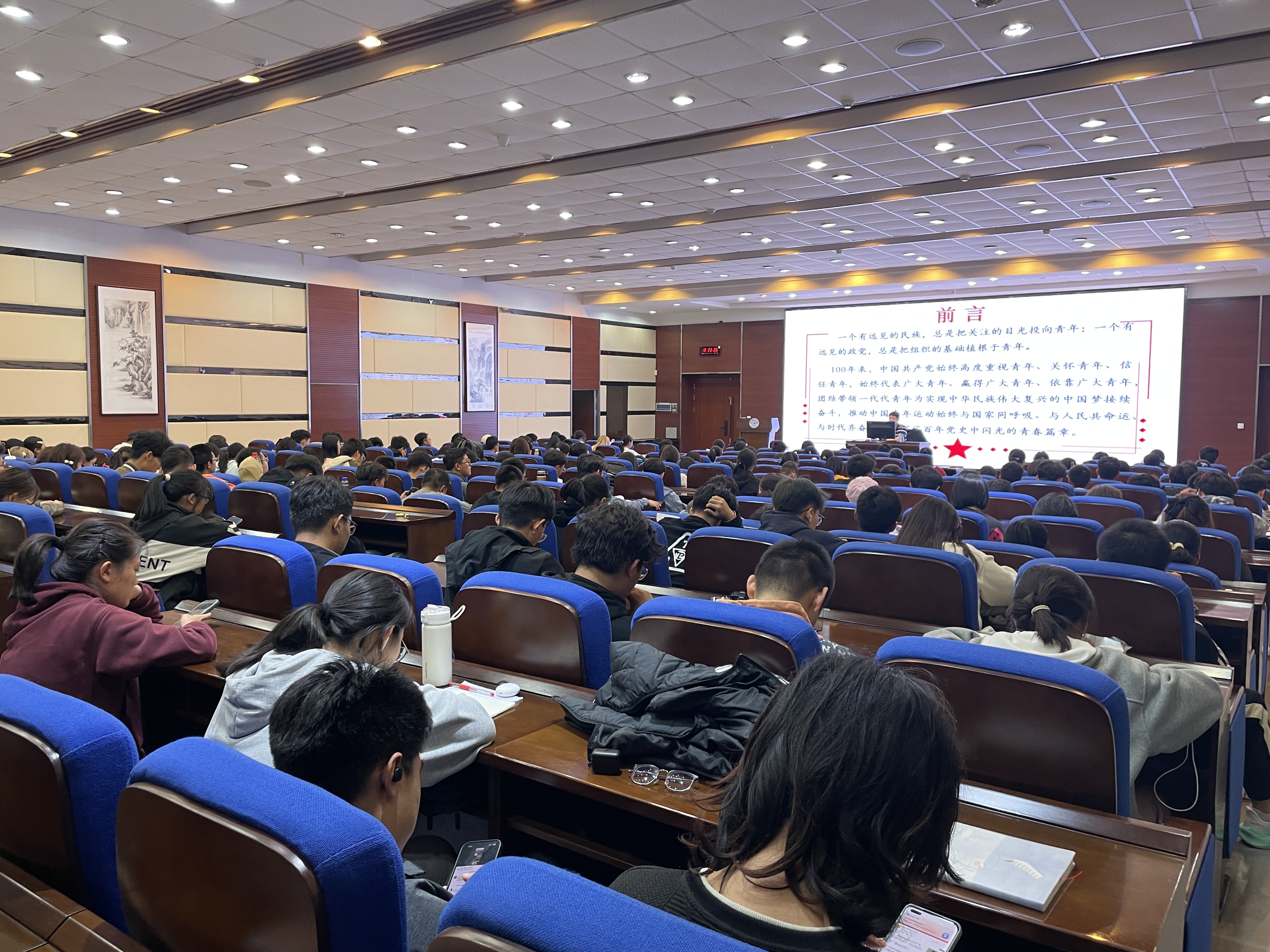 讲座中,尹老师以明确四个问题为切入点,通过中国共青团百年奋斗历程的经验启示来引导青年热爱祖国、热爱人民,培养他们的家国情怀和社会责任感。