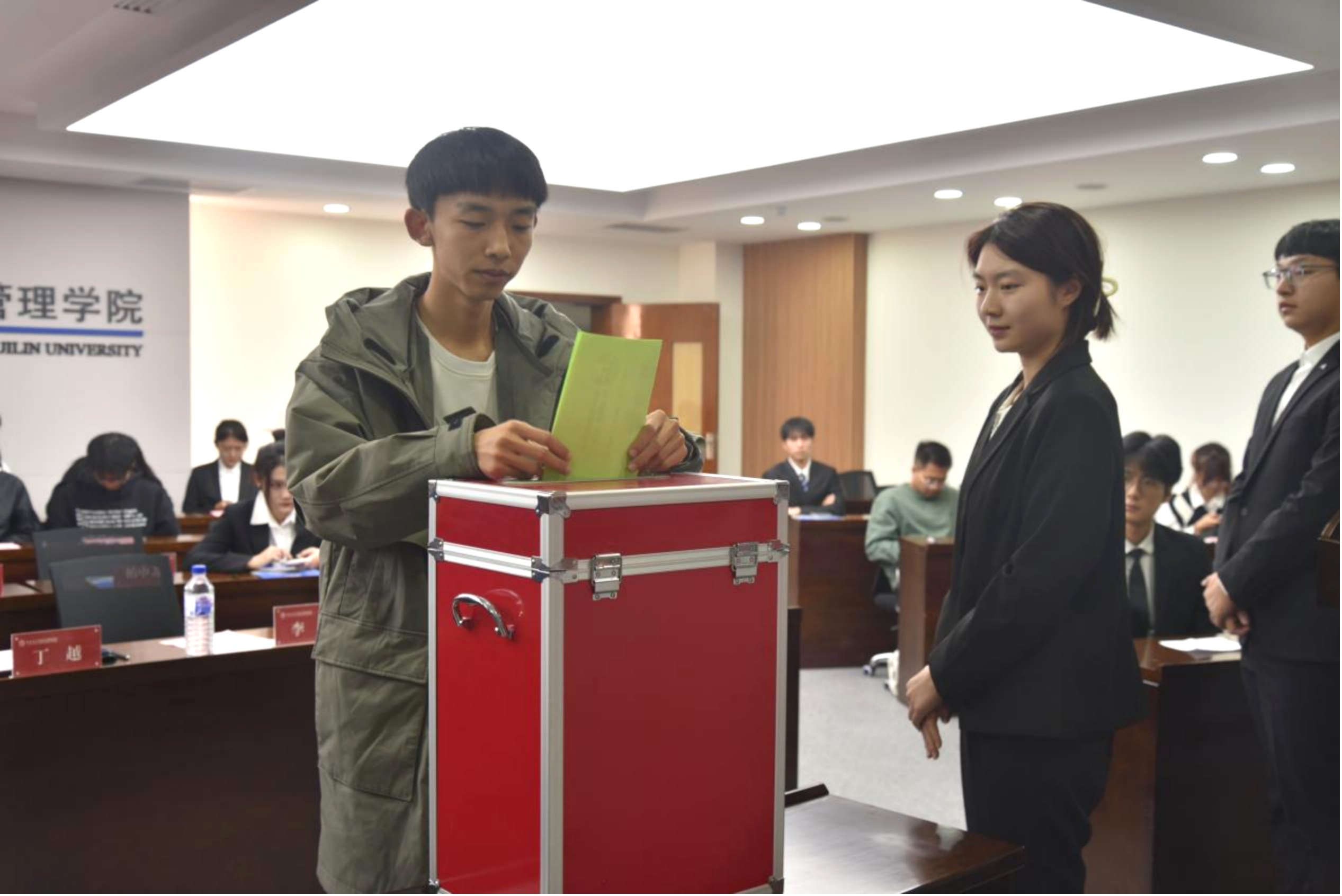 随后,由主持人宣读选举办法并对选举人进行选举。在监票人和计票人的监督下,大会最终公布选举结果。王雪、刘家邦、魏东凯成功当选成人抖音