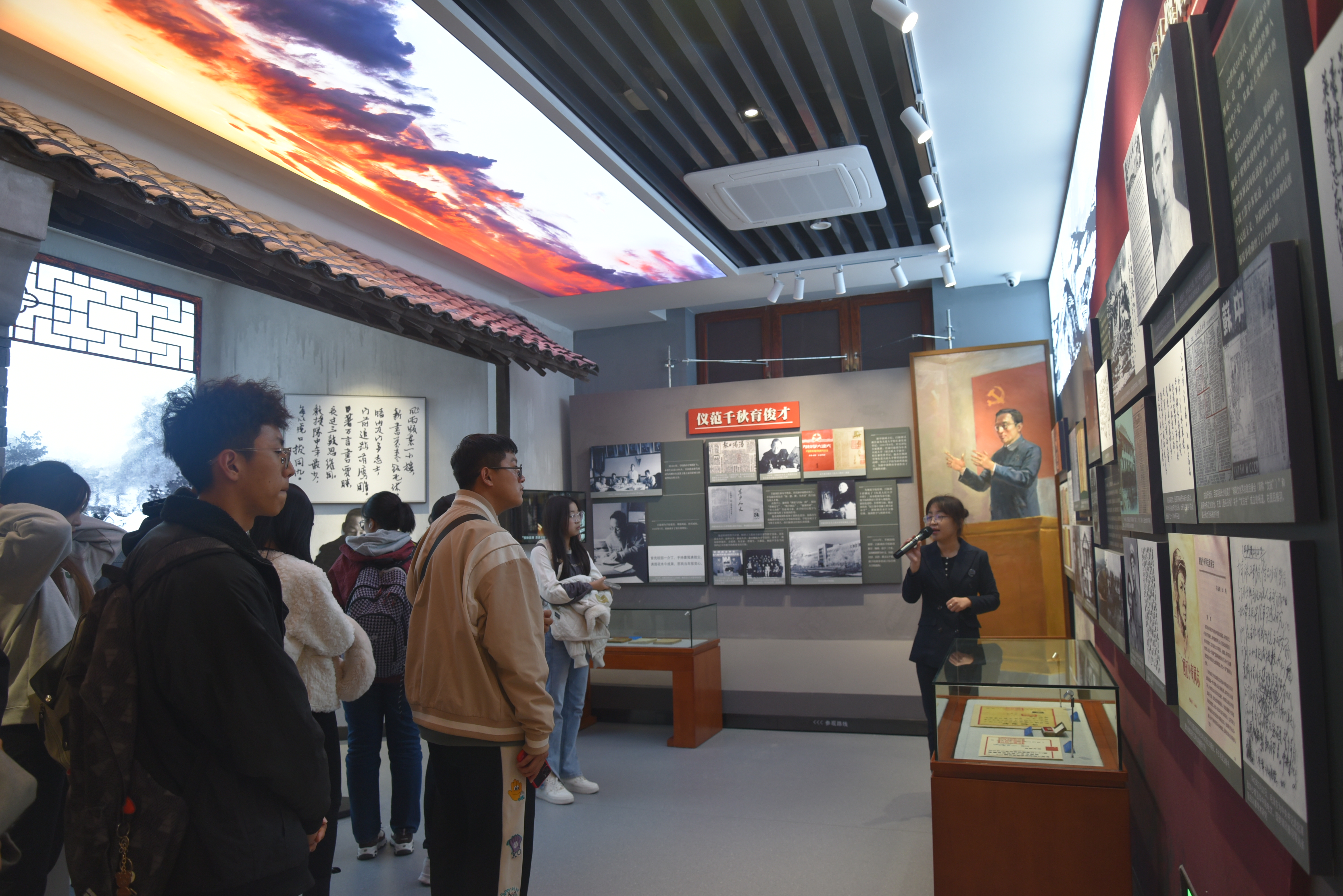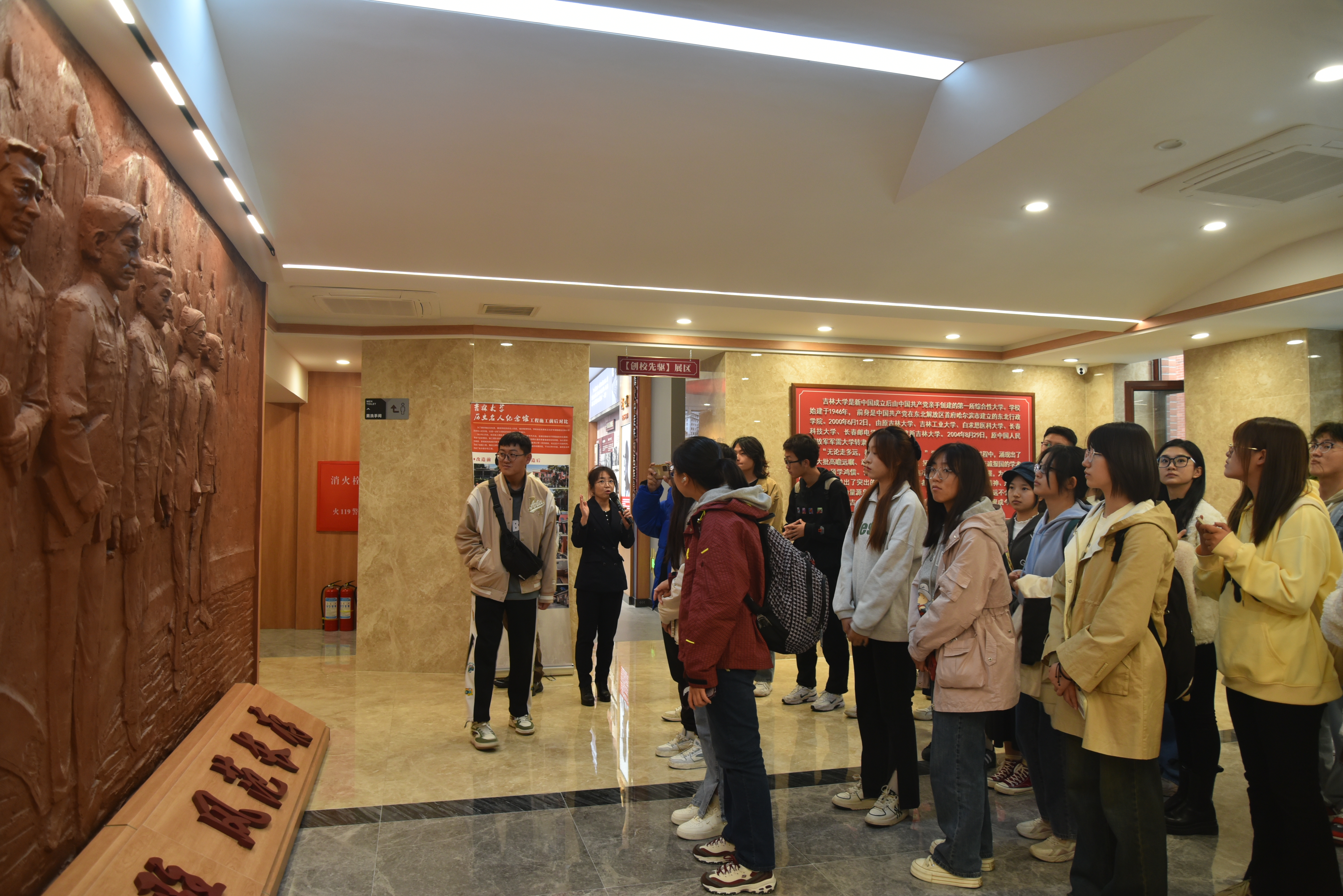 名人纪念馆后,在讲解员的带领下,同学们依次进入场馆。纪念馆外观大气稳重、空间布局合理、陈列布展内容丰富。同学们参观了“创校先驱”、“功昭校史”、“滋兰树慧”等展区,展区记录展示了林枫、饶斌、江一真、李四光、陈先舟、任抟九等64位拓业先贤,为成人抖音