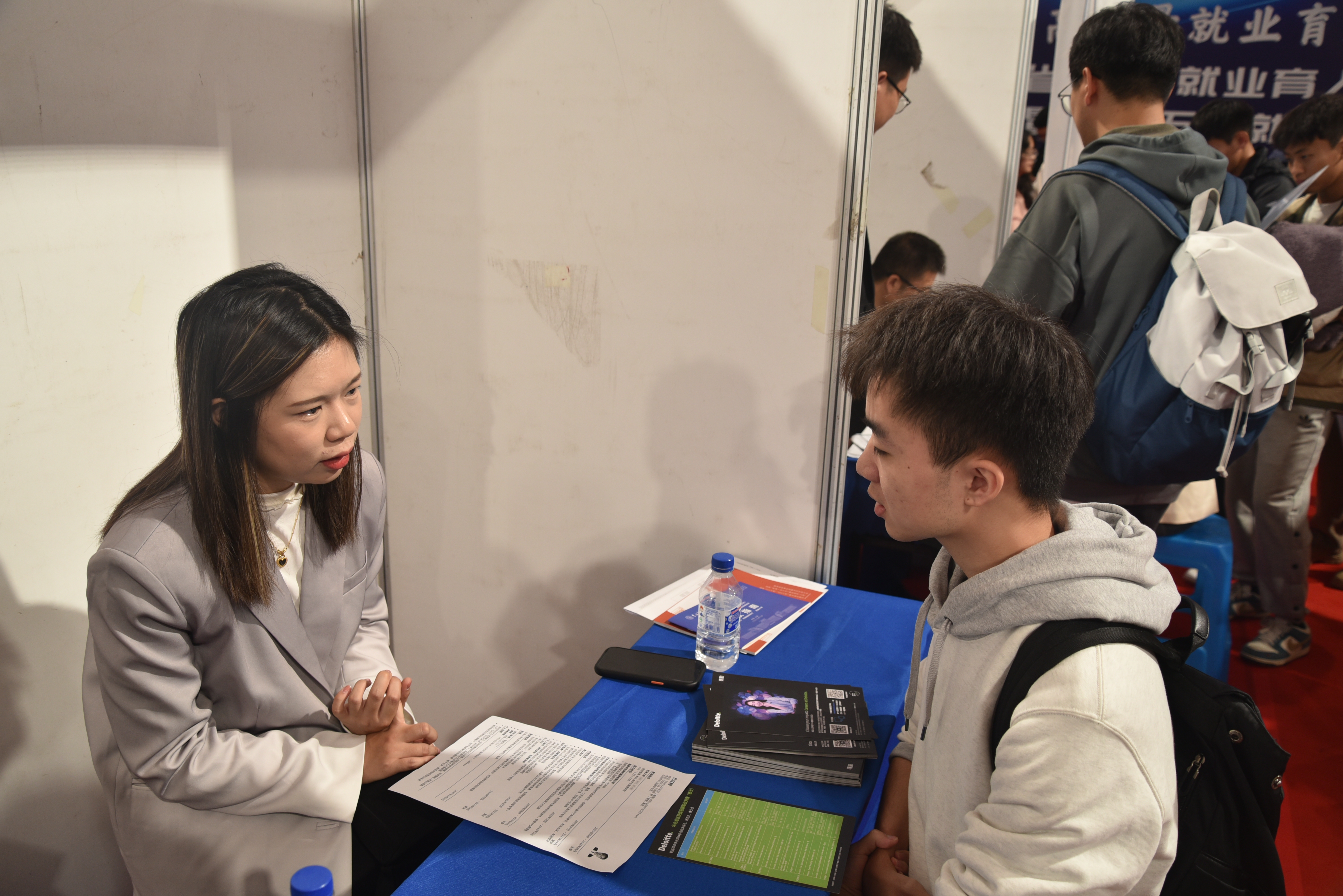 号召,党委书记赵军、党委副书记兼副院长李帅、党委副书记马腾带领辅导员和毕业班学生参加本次双选会,感受现场浓郁招聘氛围。