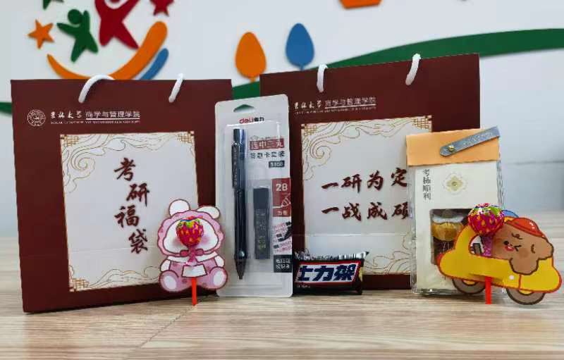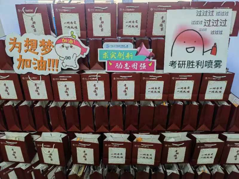 在2023年考研临近之际,还邀请了各领导班子、各系教师、在校学生录制加油视频,为考研学子送上暖心祝福,坚定信心,稳定心态;同时还为近400名考生精心准备了考研福袋,福袋里包含了柿子挂件、巧克力、文具等,象征着“事事如意”、“巧克难题”、“妙笔生花”等美好寓意,希望考研学子承载着成人抖音