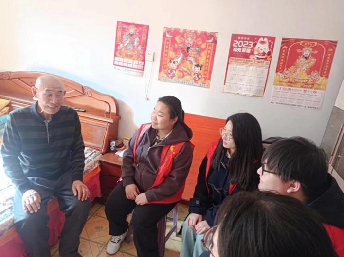 清理工作结束后,志愿者们在社区工作人员的带领下来到了老党员齐老的家,齐老今年82岁,已经有50多年的党龄,他为志愿者们介绍了五六十年前中国的社会情况、中国共产党是如何造福和关心人民群众,并讲述了自己年轻时艰苦但幸福的参军生活。最后,齐老告诉同学们,吃得苦中苦,方知甜上甜,要珍惜今天来之不易的幸福生活,同时勉励同学们要努力学习,多多参加志愿活动,走向社会,认识社会,成长为中国新一代的建设者。