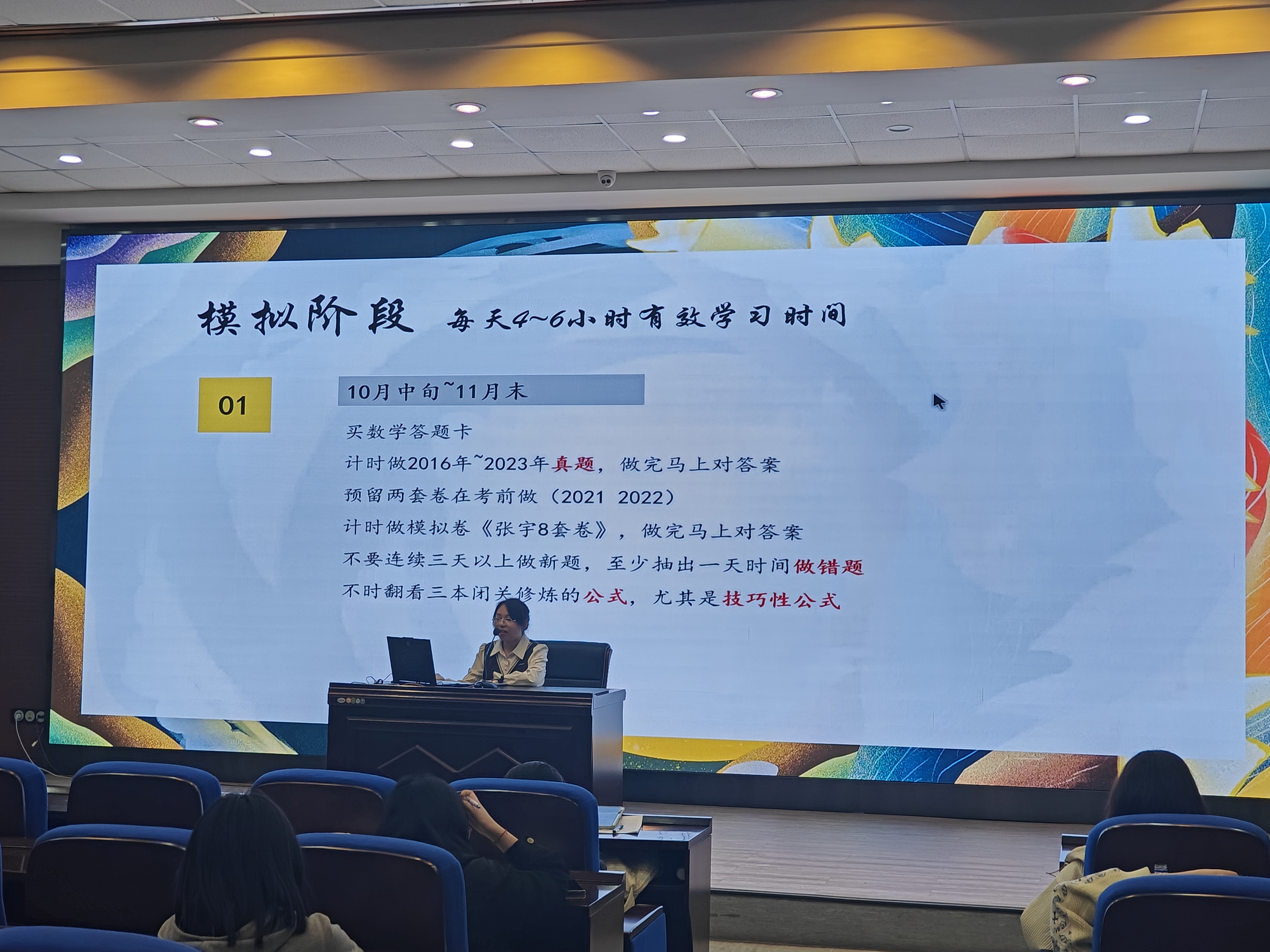 关于直博保研的相关政策,并为大家辨析了直博和保研的不同之处,使我们对自己的学业规划有了更清晰的认识。最后,王秋凝学姐以自己过去一年的亲身备战考研经历为我们分享了备战考研不同阶段需要做的事,从细节入手,详尽地分享了自己在不同备战阶段每天的时间分配,并推荐了相关学习资料,给大家提供了重要的帮助。