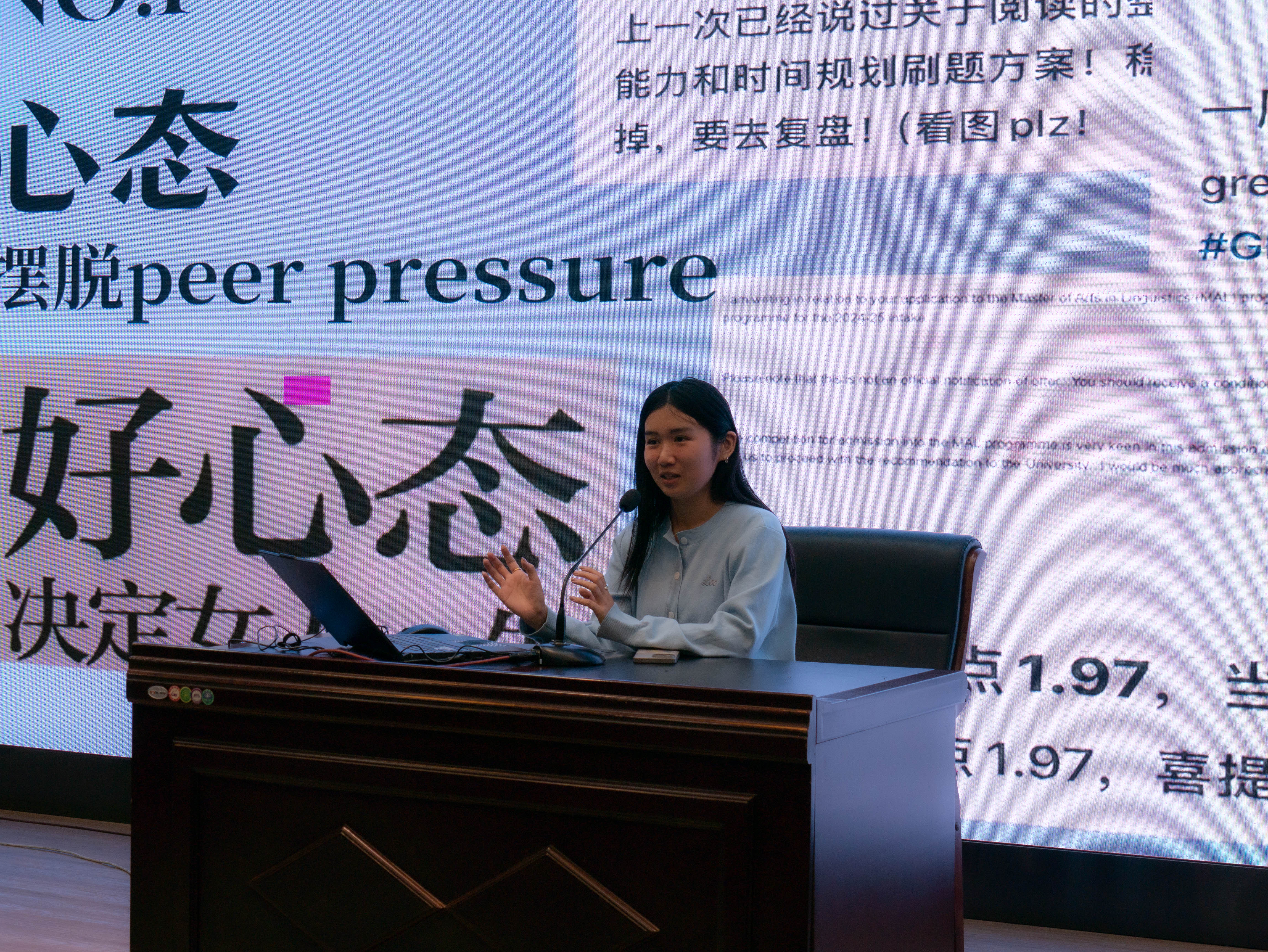 在分享过程中,学长学姐们分别从留学,推免,保研,考研及就业等多个方面为学弟学妹们分享经验,并耐心解答他们的疑问。王北鸽学姐详细地分享了出国留学需要准备的各种事项,并交流了留学国家,成人抖音