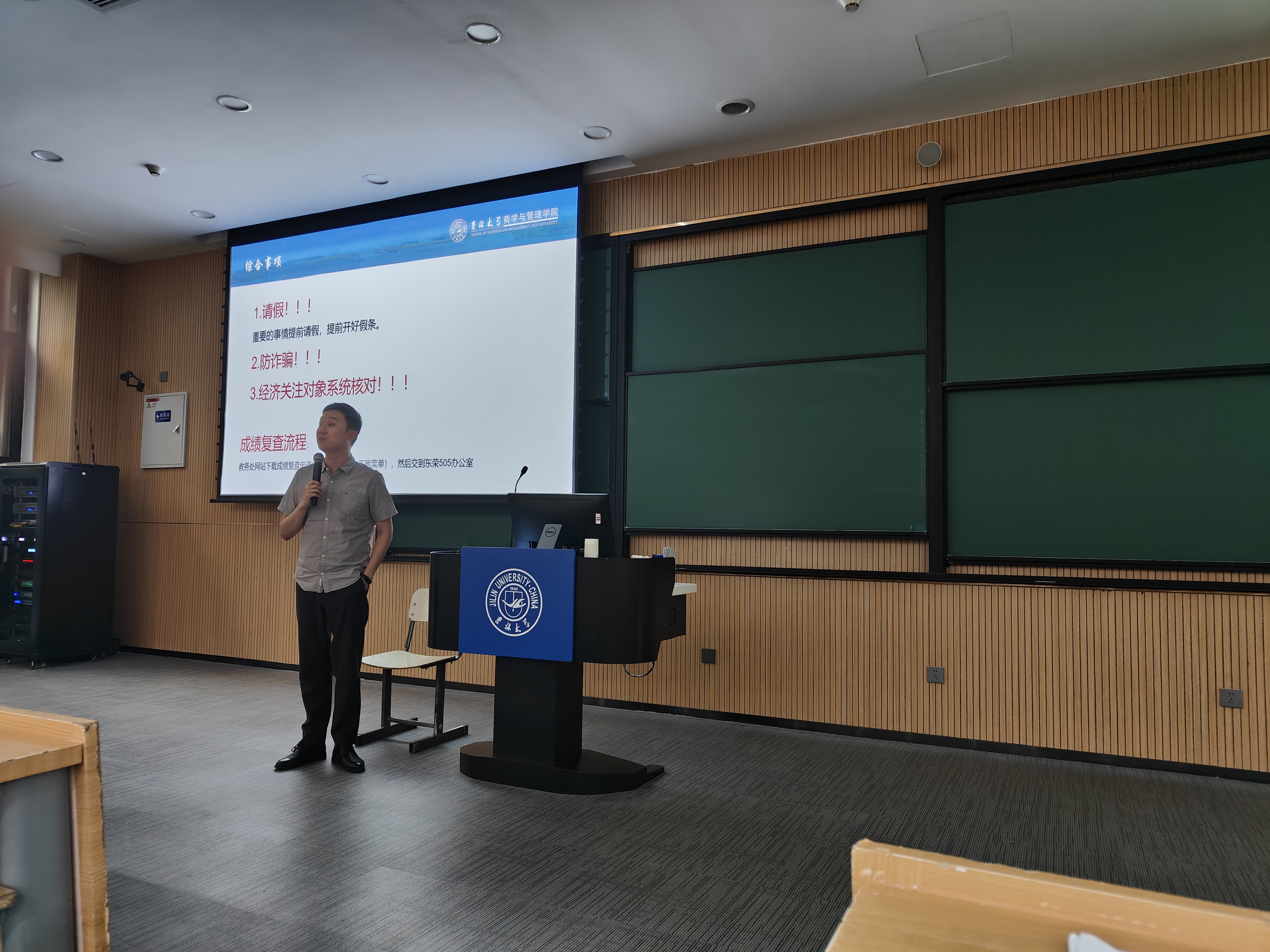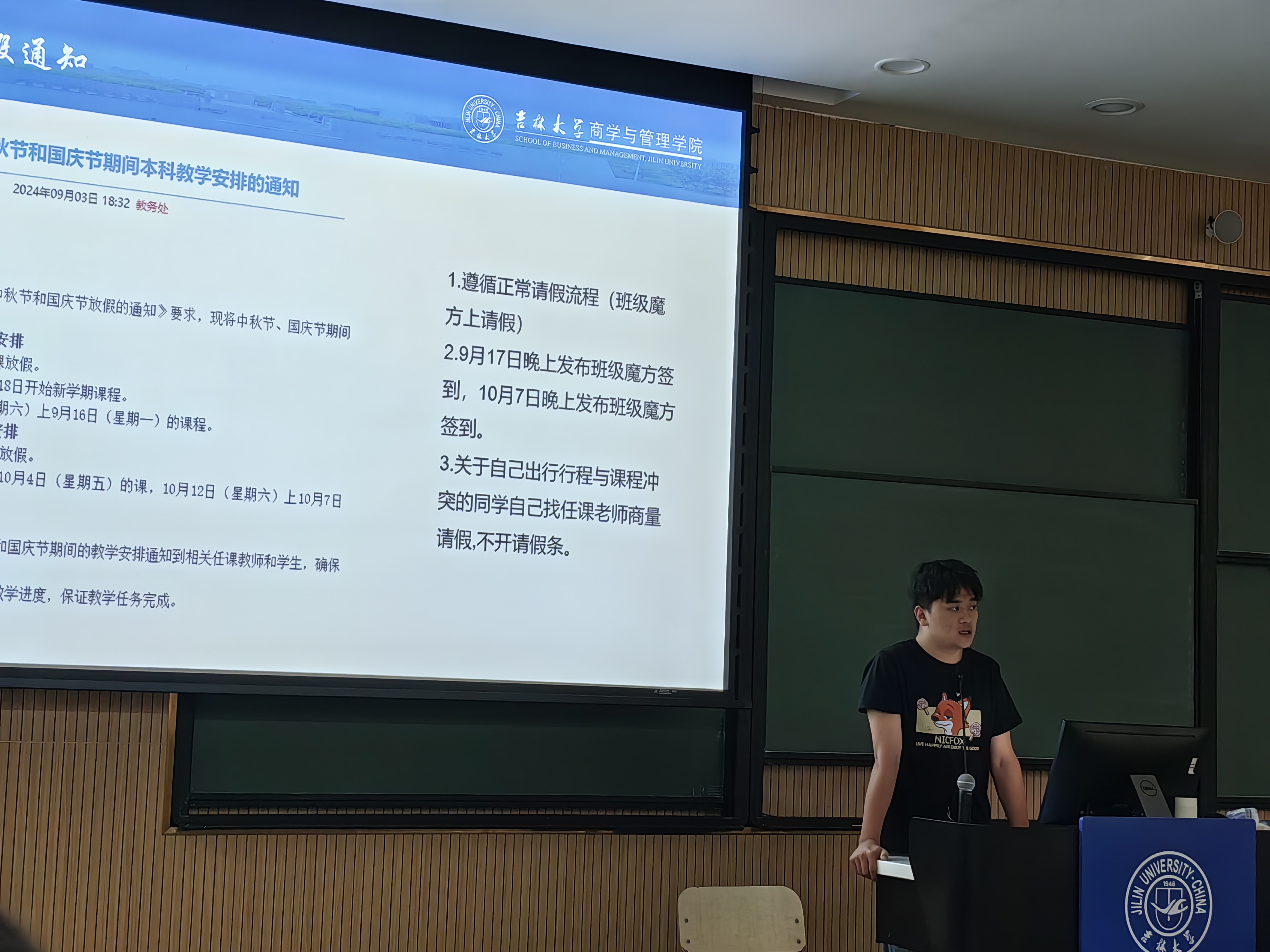 李帅书记说,学业是每位学生的首要任务,同学们应当端正学习态度,全力以赴;不仅要注重学习质量,还要追求学习效率,把每一次学习都当作是对自己知识和能力的投资。他鼓励同学们遇到困难时,要有毅力与决心去克服它们,以提高自我解决问题的能力。李帅书记的殷殷嘱托与亲切关怀,让同学们对大学生活与学习有了更深刻的认识与更清晰的规划。随后,罗小杰老师对学生日常管理和中秋国庆期间放假通知进行了说明,强调了寝室安全、请假流程以及成人抖音
