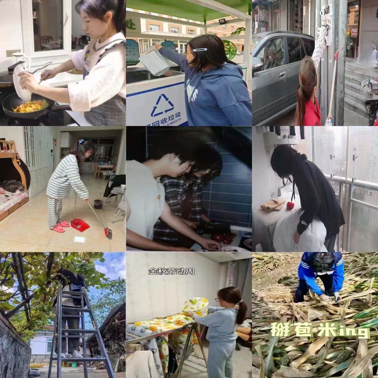 在这一周里同学们参与了清理街道、慰问孤寡老人、摆放共享单车。社会与自然见证了他们的劳动。一张张照片,一帧帧vlog视频留下了他们劳动的身影。以劳动为主题的书法作品、绘画作品、手抄报、宣传视频更是令人耳目一新。活动结束后,成人抖音