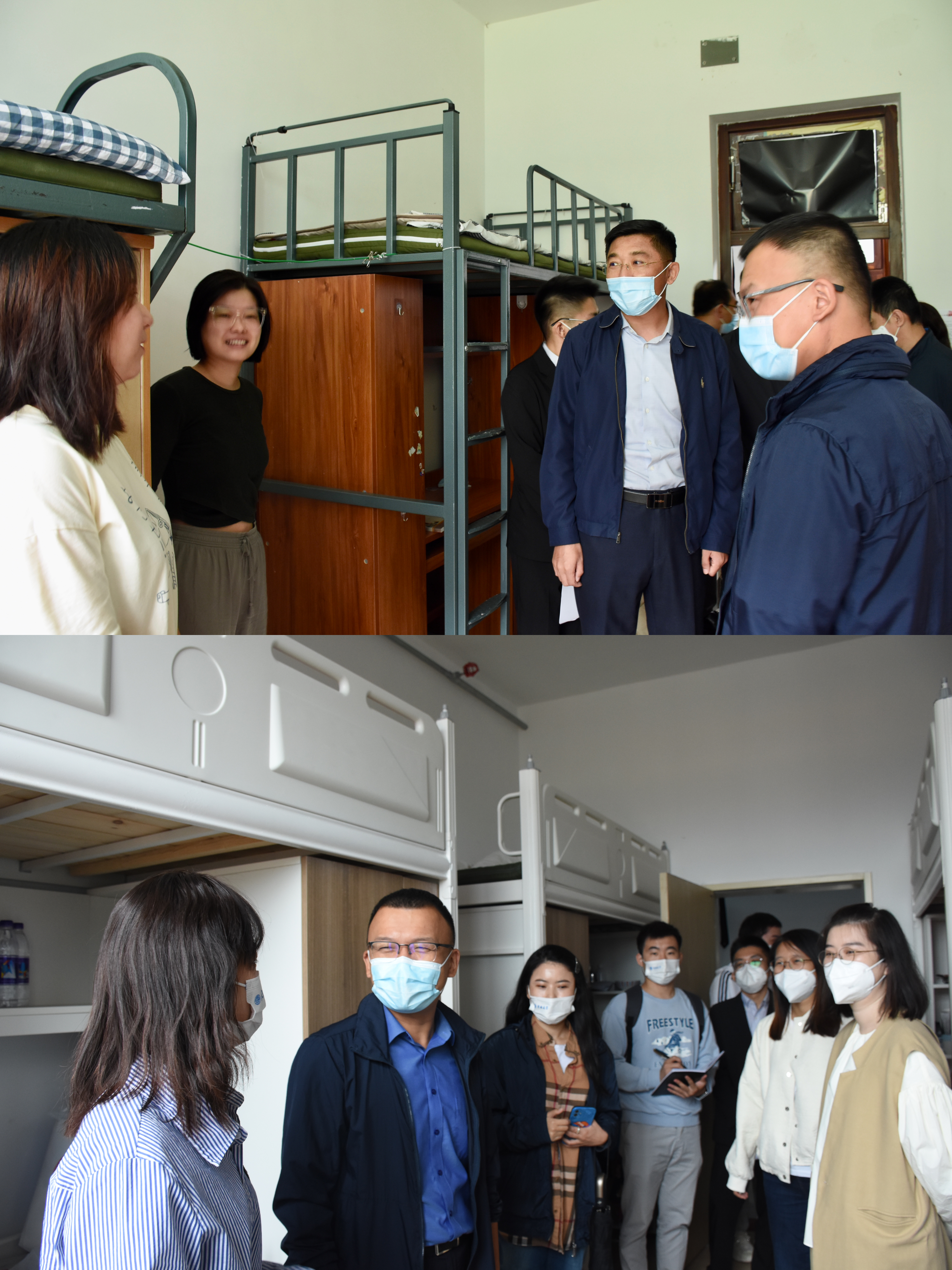 党委书记赵军,常务副院长张世伟,常务副书记丰硕,副院长隋建利,党委副书记马腾,研究生教学秘书唐吉平、付卫艳、侯佳萌,研究生辅导员甄宓、裴月莹、王敬乔一同前往南六、南五C、北三、北四公寓走访。