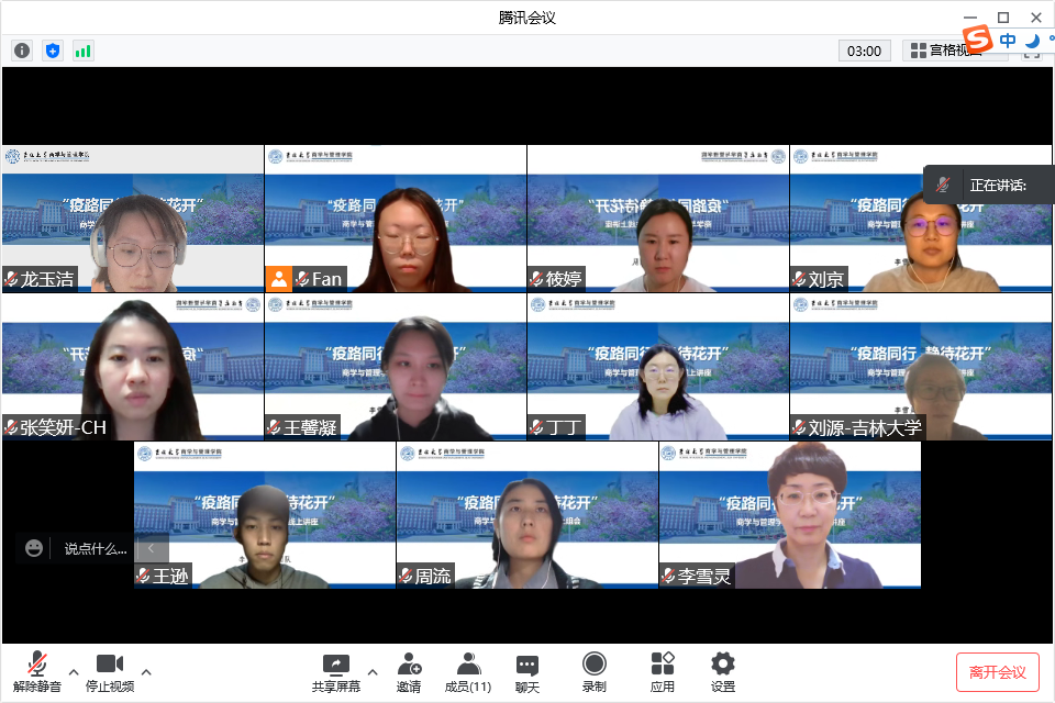 通过本次学术研讨,不仅加深了疫情期间导师和学生们的交流,还鼓励研究生对学术前沿的不断探索。李雪灵教授表示,现在正是疫情攻坚战的关键时期,我们一定要共克时艰、同心抗疫,整理好自己的心态,以更加积极的生活和学习心态面对当前的疫情,坚持到最后一刻。吉林终有吉临时,长春定复往常春,在大家共同的努力下,我们必将夺取这场疫情防控攻坚战的胜利!
