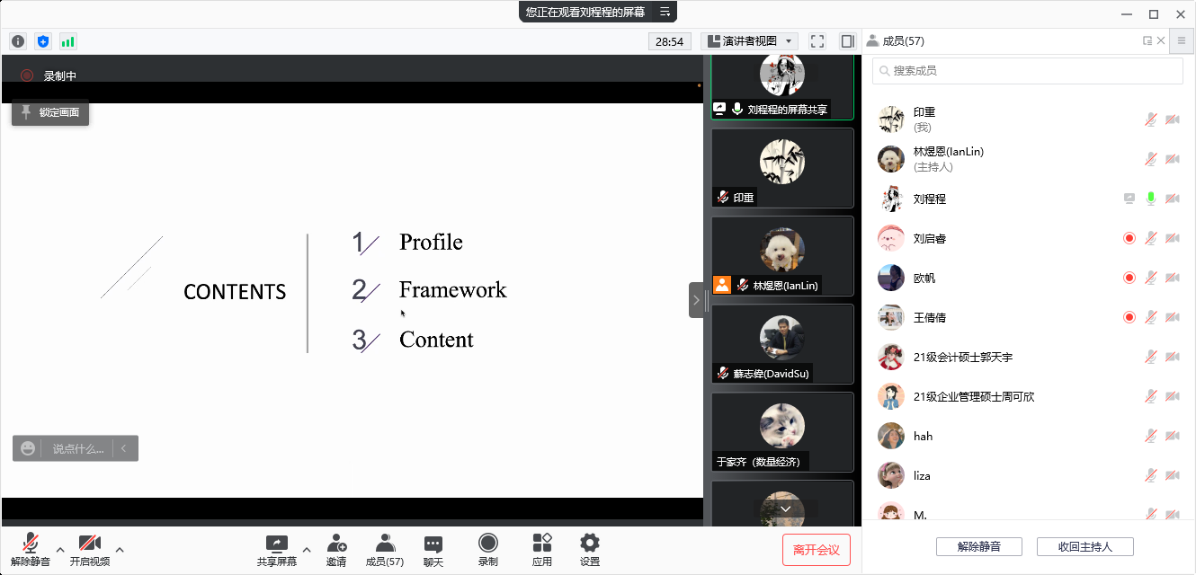 会议最后,财务管理系主任孙烨教授表达了对封校期间同学们的关心,鼓励大家调整心态,积极适应疫情时期的学习生活,并安慰同学们“没有哪一个冬天不会过去,没有哪一个春天不会到来”,她认为在疫情大环境下进行线上研讨是一种很好的学习提高方式,希望大家珍惜时间,在保持身心愉悦的同时,刻苦学习。至此,本次研讨班在浓厚的学术氛围中圆满结束。