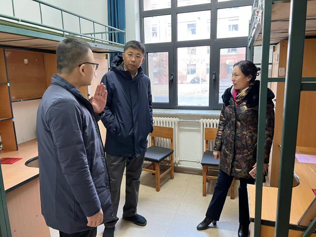 党委书记赵军老师来到北四公寓了解学生寝室搬迁的最新进展,赵军老师强调一定要及时了解同学们的所需所想,帮助同学们解决搬迁过程中困难和问题。随后赵军老师与学生公寓管理与服务中心主任张淑红老师对日后公寓建设重点进行沟通。赵军老师表示,要充分发挥寝室思政阵地作用,打造新型公寓,为同学们创造更好的学习生活环境。