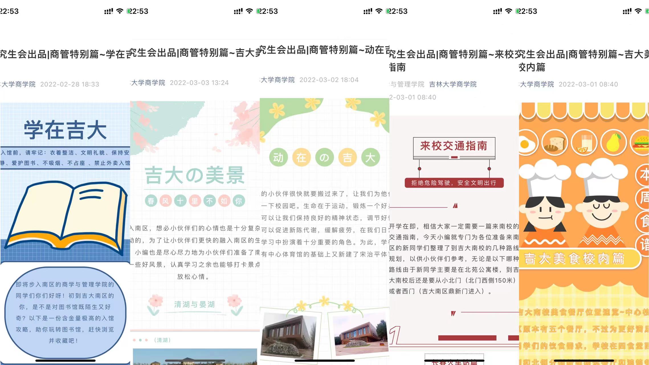 美食篇之北门篇”中还介绍了各式各样让人垂涎欲滴、风味俱佳的美食店。除此之外,还有“购物篇、交通篇、运动篇、办公场所篇、美景篇”等,每一篇线上推送都由研究生会实地考察、精心编制,不仅细致到交通路线的具体时长,就连每一家美食店的特色美食都做过数据调查。